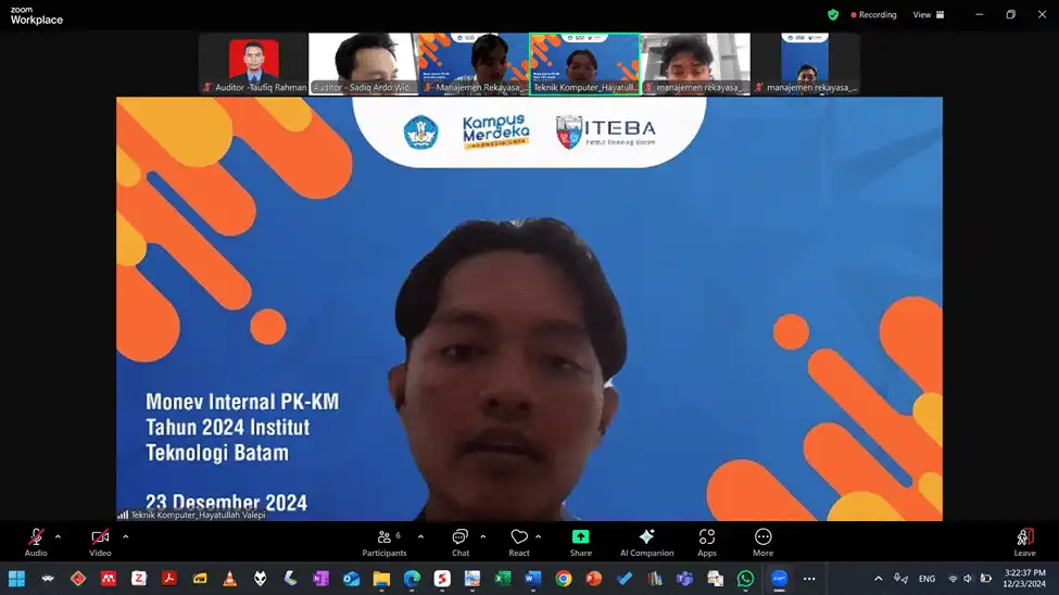 December 30, 2024Institut Teknologi Batam (ITEBA) – Lembaga Penjaminan Mutu (LPM) ITEBA melaksanakan kegiatan Monitoring dan Evaluasi (Monev) Internal tahun kedua Program Pembelajaran Kampus Merdeka Kebijakan Kampus Merdeka (PKKM) ISS MBKM pada Senin (23/12/2024). Kegiatan ini diselenggarakan berdasarkan Surat Perintah Tugas Rektor Nomor 081/SPT-ITEBA/XII/2024.